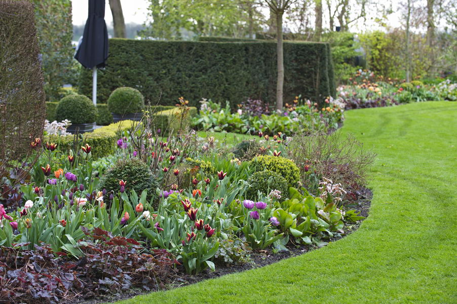 - Garten Joke und Henk Cijsouw, Hecke, Tuin t`Hofje, Tulpe 'Gavota', Tulpen