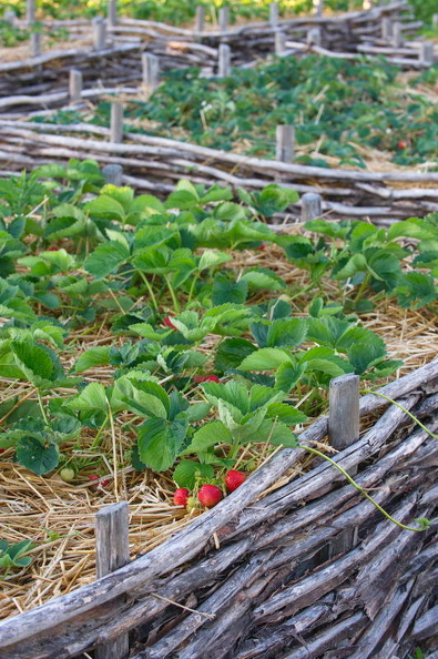 Erdbeeren, Flechtzaun, Hochbeet, Stroh