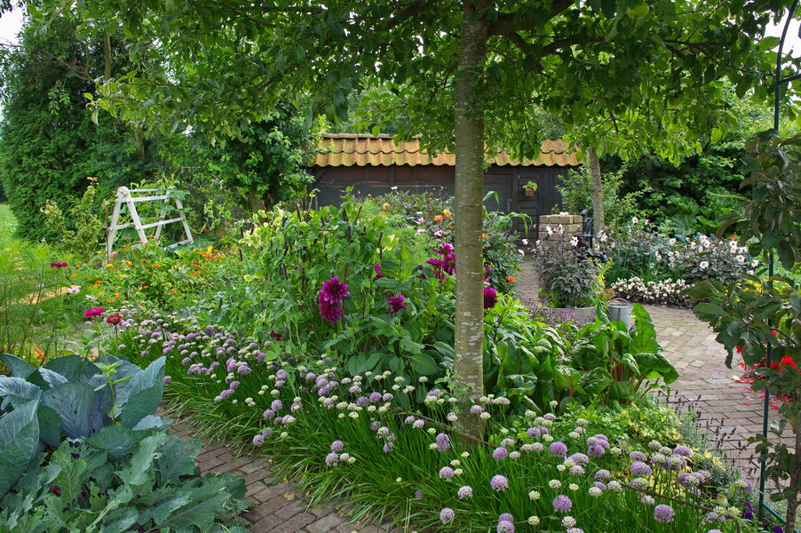 - Bauerngarten, Beeteinfassung, Gemüsegarten, Schnittknoblauch