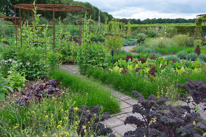 - Bauerngarten, Beeteinfassung, Gemüse, Gemüsegarten, Rankgerüst, Schnittknoblauch, Tuin De Boschhoeve