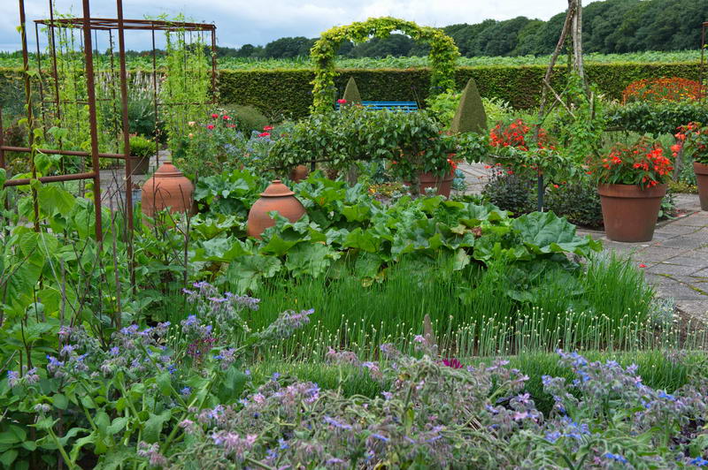 - Bauerngarten, Gemüse, Rhabarbertöpfe, Tuin De Boschhoeve