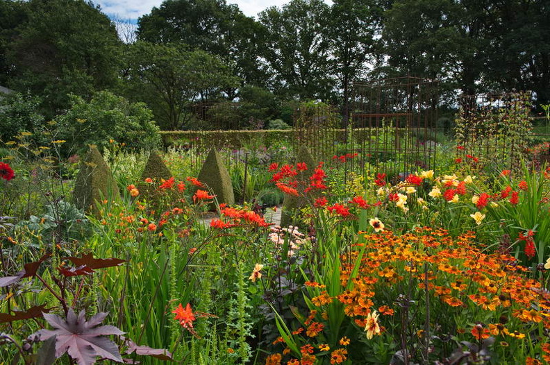 - Bauerngarten, Crocosmia, Helenium, Montbretien, orange, Tuin De Boschhoeve