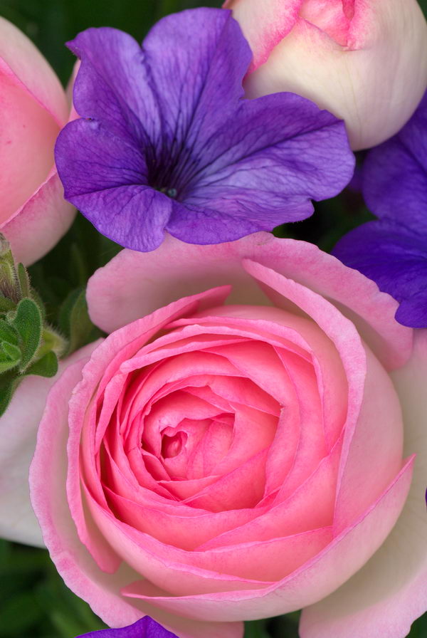 - Rose "Eden", Petunia