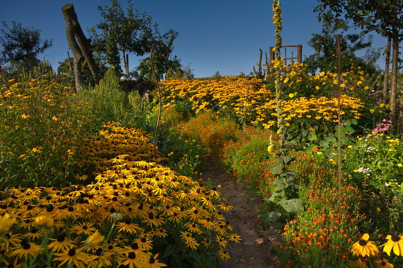 Rudbeckia, Tagetes, gelb, Verbascum, Garten Traute Struve