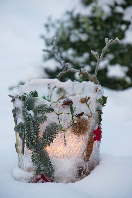 Eiskübel, Laterne, Schnee, Eislaterne, Windlicht