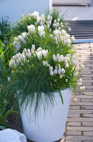 Muscari, Narzissen, Topf, Urban Gardening, weiß
