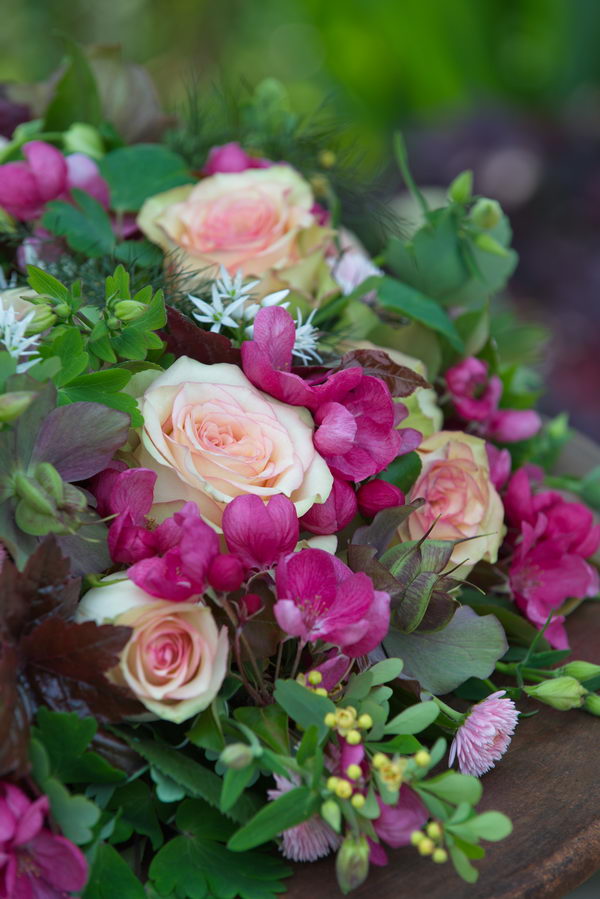 - Kranz, rosa, Rose "Melody", Zierapfel