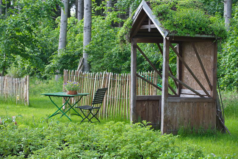 - Dachbegrünung, Sitzplatz, Staketenzaun, Staudengärtnerei, Zaun