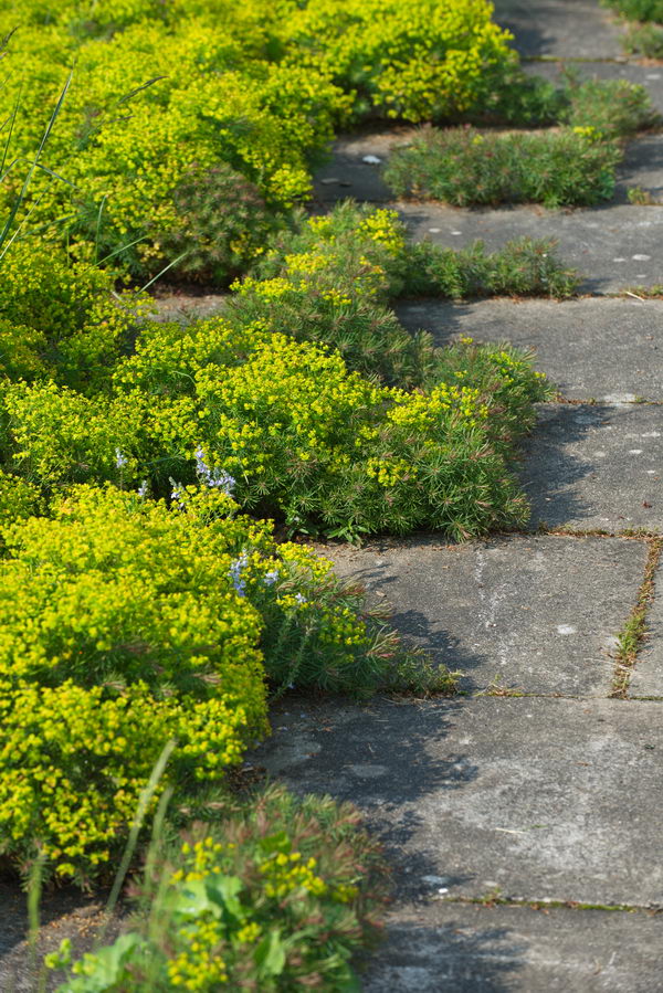 - Euphorbia cyparissias, Fugenbepflanzung, Weg