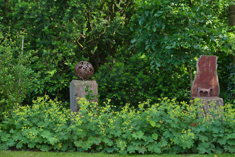 Blech, Efeu, Hedera, Holz, Rost, Skulptur, Säule, rund, Alchemilla, Homola