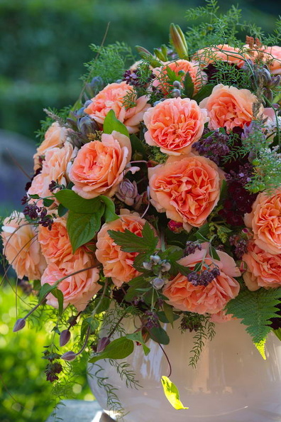 - Gelber Strauß aus Rosen in einer Vase aus Zinkeblech