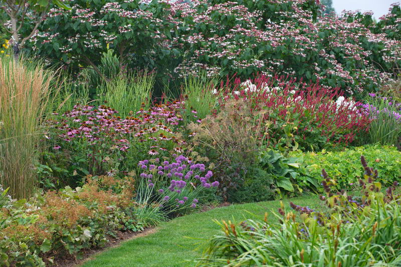 - Clerodendron trichotomum, Echinacea, Knöterich, Persicaria amplexicaule, Bistorta amplexicaule, Tuin de Villa