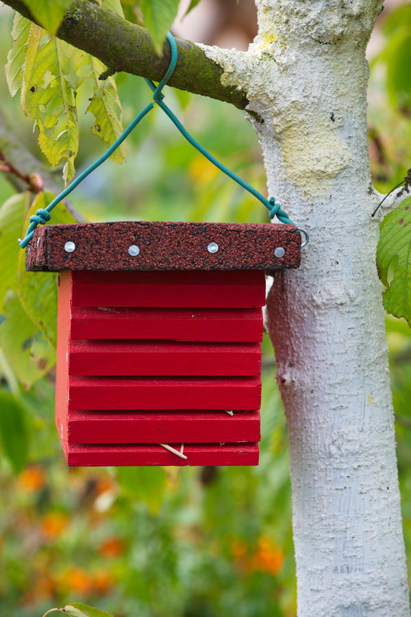 - Baustamm, Florfliegenkasten, gekalkt, Insektenhotel, Weißanstrich