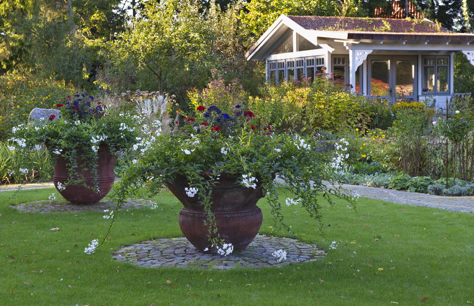 - Gartenhaus, Geranien, Heliotroph, Kübel, Solanum jasminoides