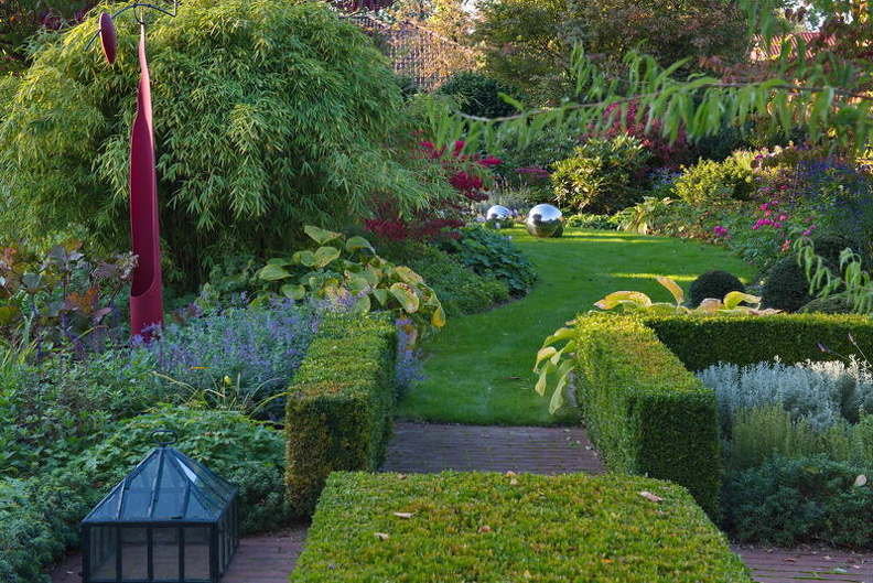 - Bambus, Buchs, Cornus controversa, formal, Garten Schnewitz, Hecke