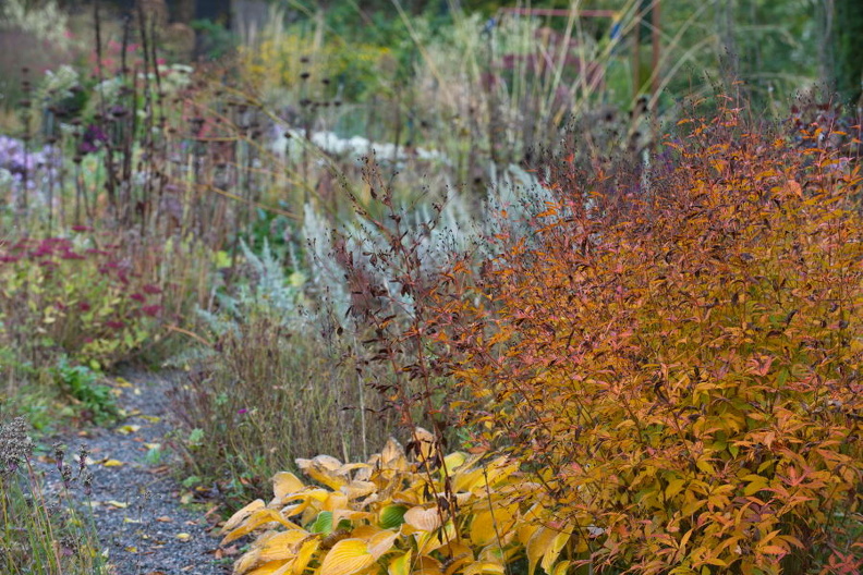 - Beet, Gillenia trifoliata, Gräser, Hosta, Kies, Die Staudengärtnerei
