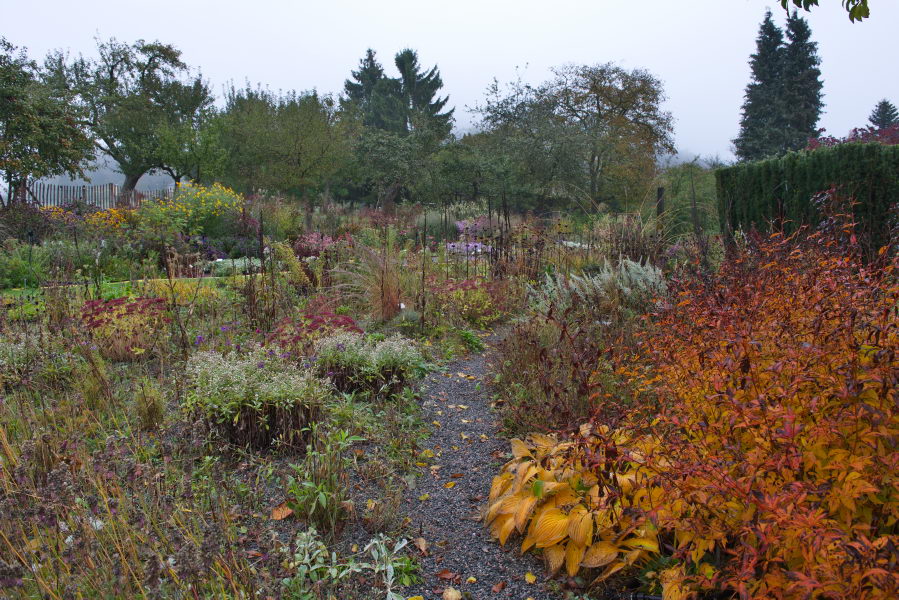 - Beet, Gillenia trifoliata, Gräser, Hosta, Kies, Die Staudengärtnerei