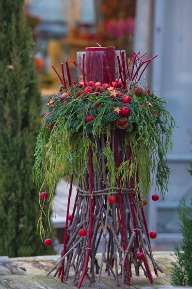 Advent, Deko, Gesteck, Kerze, Lebensbaum, Thuja, Zierapfel, Zweige, Tanne
