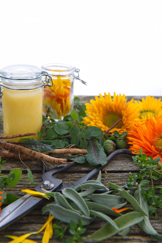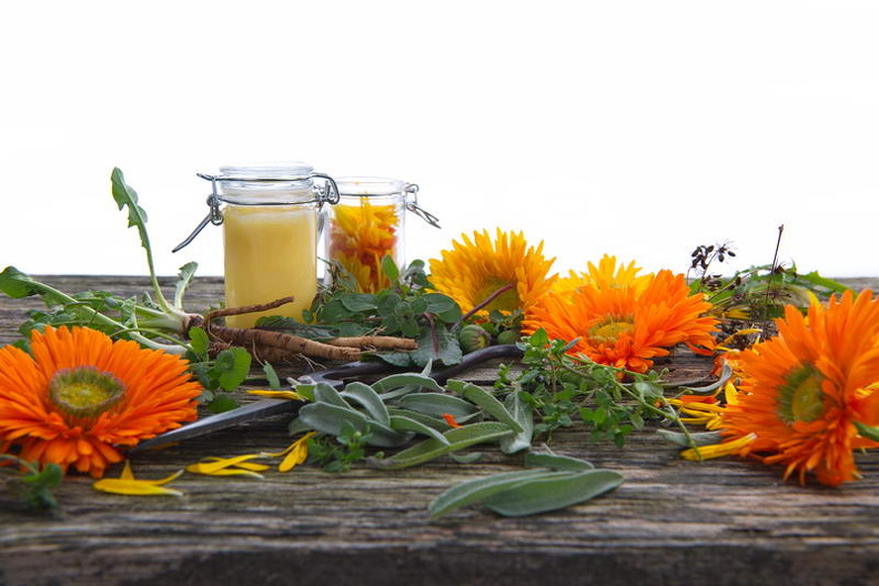 - Calendula, Einmachglas, Kräuter, Ringelblume, Salvia, Vogelmiere, Stellaria media