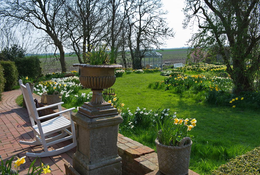 - Narzisse, Rasen, Schaukelstuhl, Terrasse