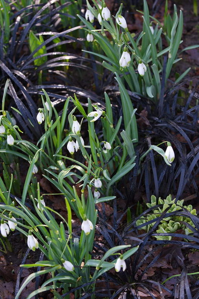 - Galanthus 'Viridapice', Ophiopogon planiscapus 'Niger', Schneeglöckchen, schwarzer Schlangenbart
