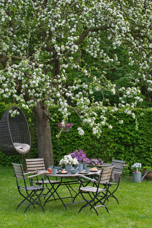 Apfelbaum, Sitzplatz, gedeckter Tisch