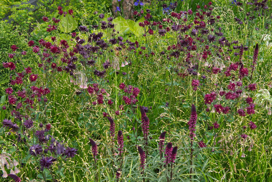 - Aquilegia vulgaris, Chelsea Flower Show, Hohes Perlgras, Lysimachia atropurpurea, Melica altissima, Nectaroscordum siculum, Sizilianischer Honiglauch, Chelsea Flower Show