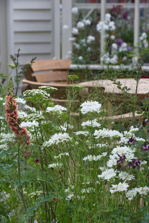 - Chelsea Flower Show, Naturgarten, Sitzplatz, Skabiose, Verbascum, Weiss, Chelsea Flower Show