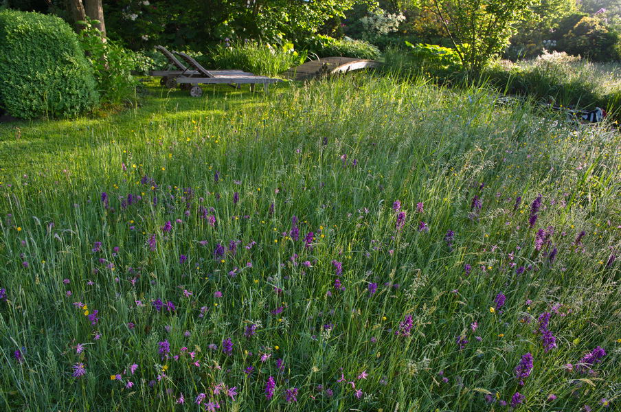 - Dactylorhiza majalis, Knabenkraut, Ranunculus acris, Garten Freese