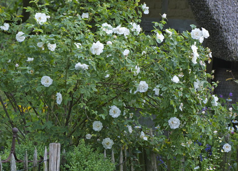 - 'White rose of York', Bauerngarten, Rosa x alba 'Semiplena', Garten Chalupka
