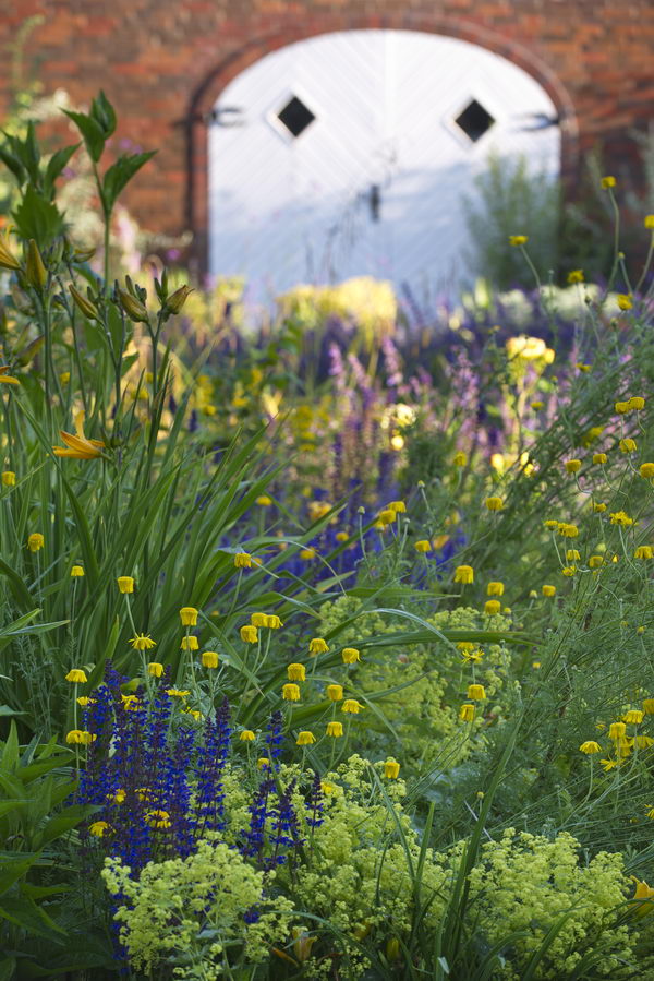 - blau, gelb, Hemerocallis, Salvia 'Caradonna'