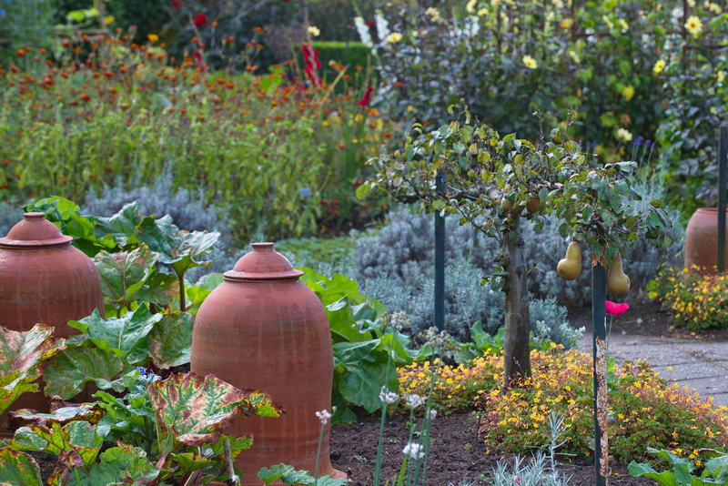 - Gemüsegarten, Rhabarbertopf, Spalierobst, De Boshoeve