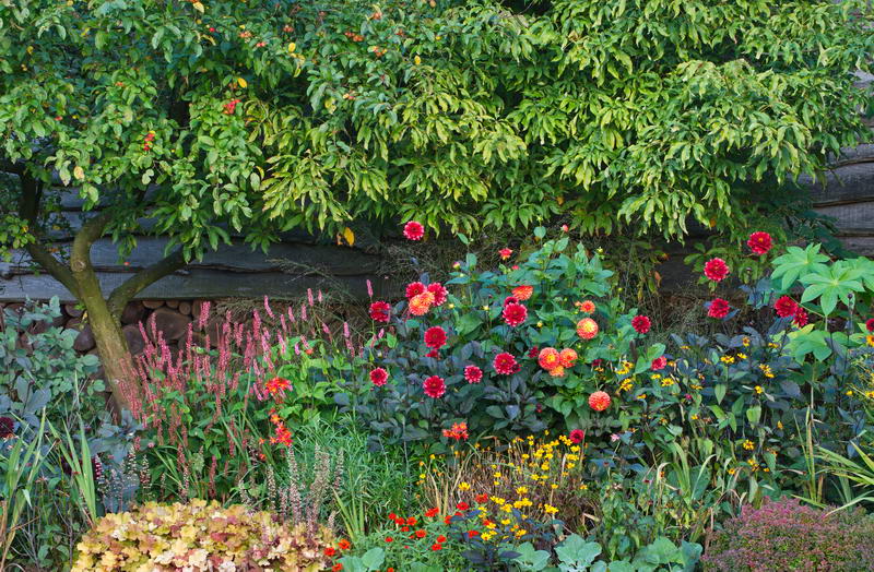 Dahlia, Heuchera, Zierapfel, Rudbeckia, Tagetes, Tuin De Boshoeve