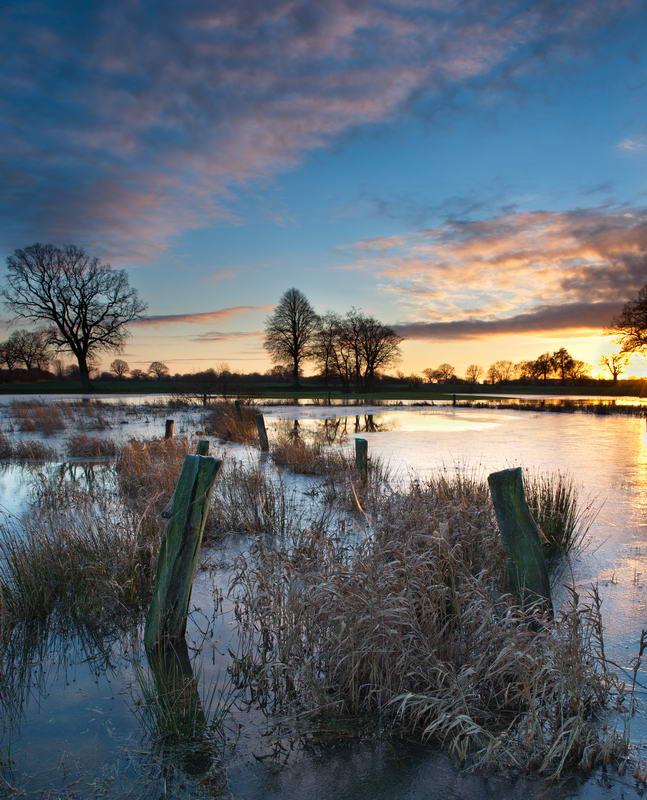 - Eis, Frost, Teich, Wasser, Wiese, Winter