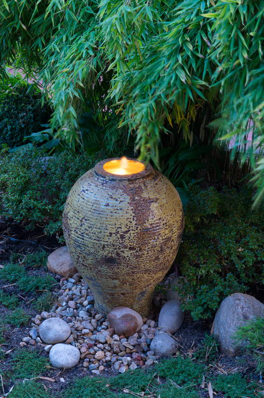 - Abend, Beleuchtung, Licht, Amphore, Sprudel, Garten Wandrey