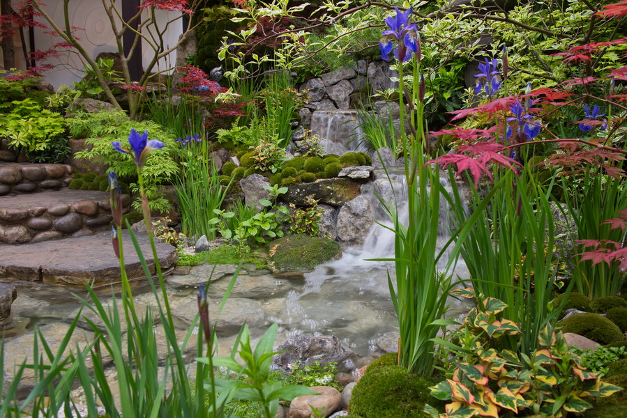 - Bach, Chelsea Flower Show, Iris, Japan, Japangarten, Wasserfall, Chelsea Flower Show