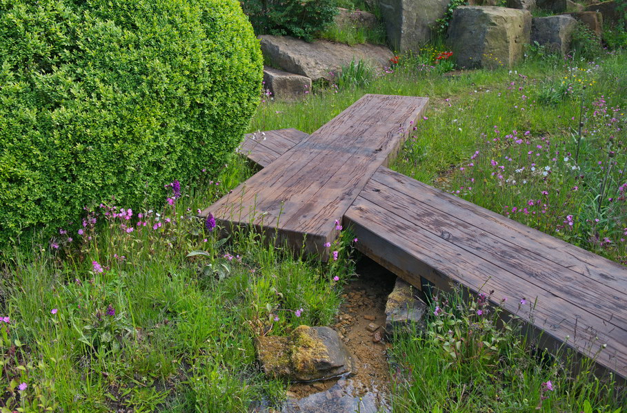 - Bohlen, Chelsea Flower Show, Felsen, Holz, Naturgarten, Steg, Weg