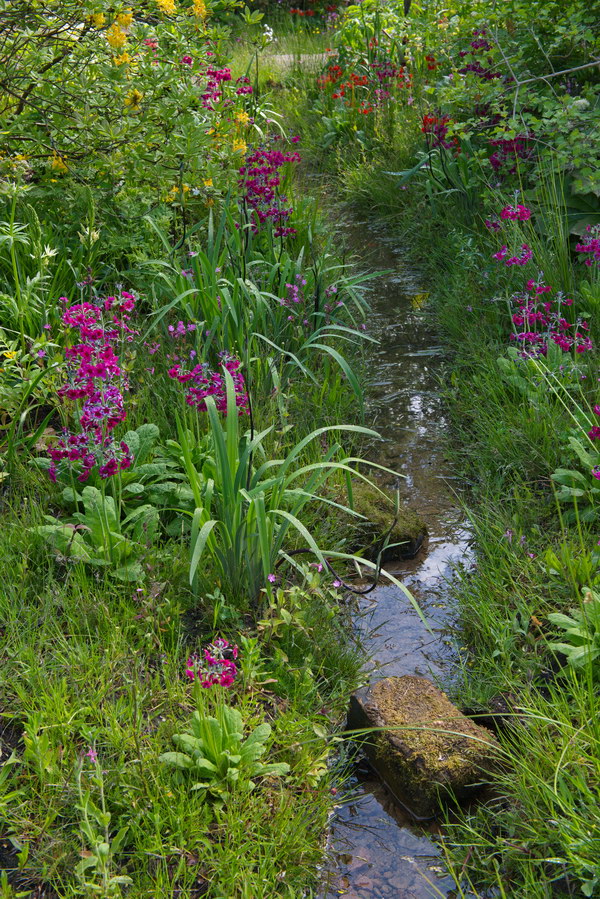 - Bach, Chelsea Flower Show, Naturgarten, Primula bulleyana, Primula 'Inverewe', Chelsea Flower Show
