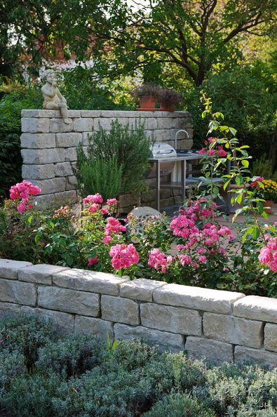 - Mauer, Sitzgruppe, Sitzplatz, Sonnensegel, Terrasse