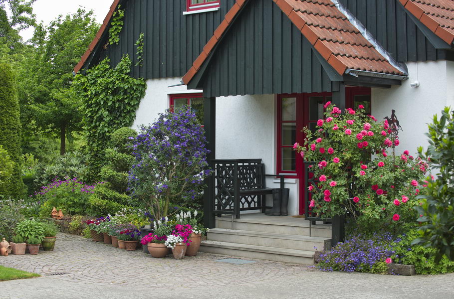- Rose 'Rosarium Uetersen', Eingang, Vorgarten