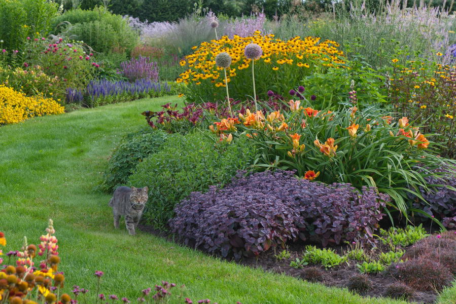 - Beet, Garten der Horizonte, Helenium, Hemerocallis, Katze, Maria Luer, Sedum