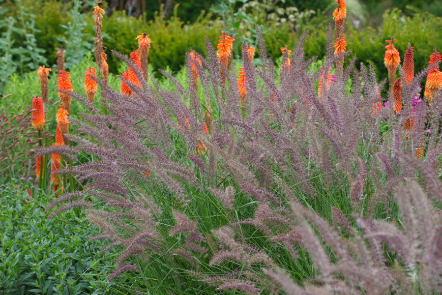 - Fackellilie, Garten der Horizonte, Heidgraben, Kniphofia, Pennisetum 'Karley Rose'