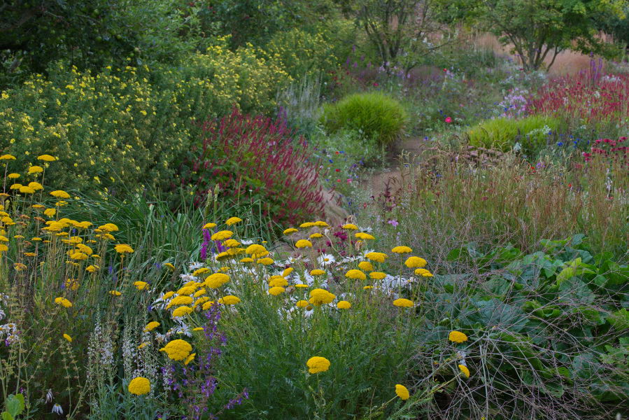 - Achillea 'Gold Plate', Persicaria, Präriebeet, Präriegarten, Cambo Garden