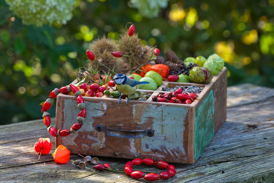 Eicheln, Früchte, Hagebutten, Herbst, basteln, Meise