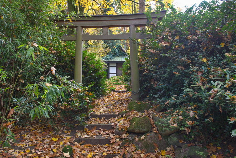 Herbstlaub, Torii, Garten Meyer