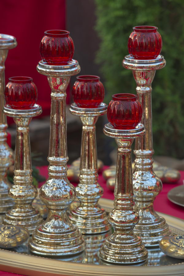 - Advent, Bauernsilber, Deko, Kerzenständer, rot, silber