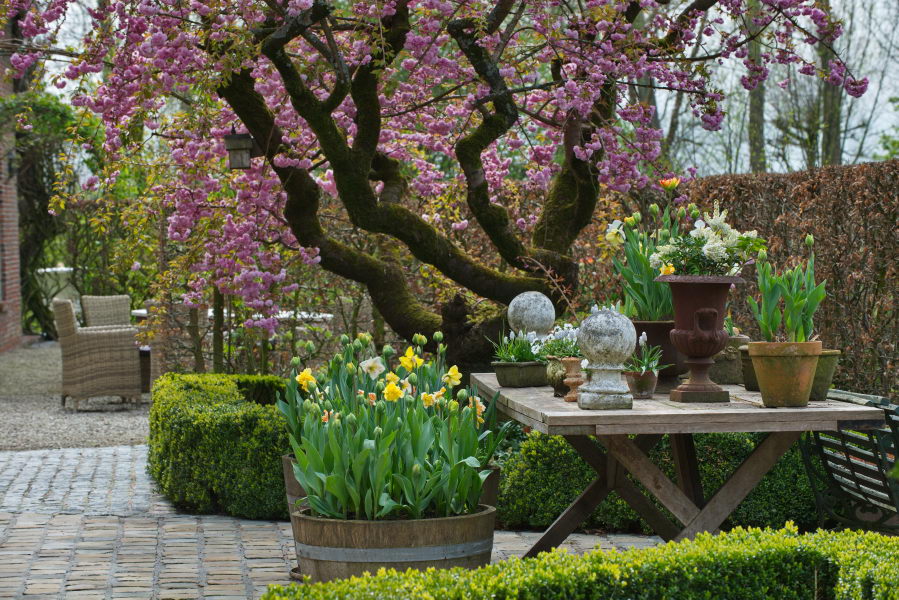- Birgit Rousere, Buchsbaum, Kübel, Prunus serrula 'Kanzan', Zierkirsche