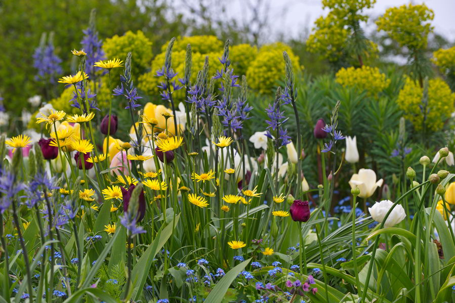 - Camassia, Euphorbia characias ssp. wulfenii, Garten Maldegem