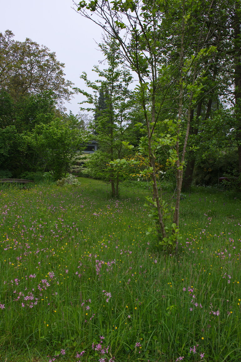 - Dactylorhiza maculata, Geflecktes Knabenkraut, Hahnenfuß, Kuckucks-Lichtnelke, Lychnis flos-cuculi, Naturgarten, Panorama, Ranunculus acris, Wildblumen