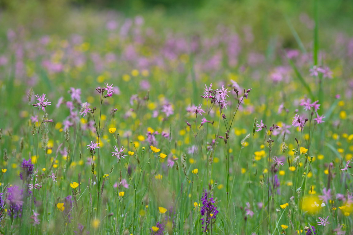 - Dactylorhiza maculata, Hahnenfuß, Kuckucks-Lichtnelke, Ranunculus acris, geflecktes Knabenkraut